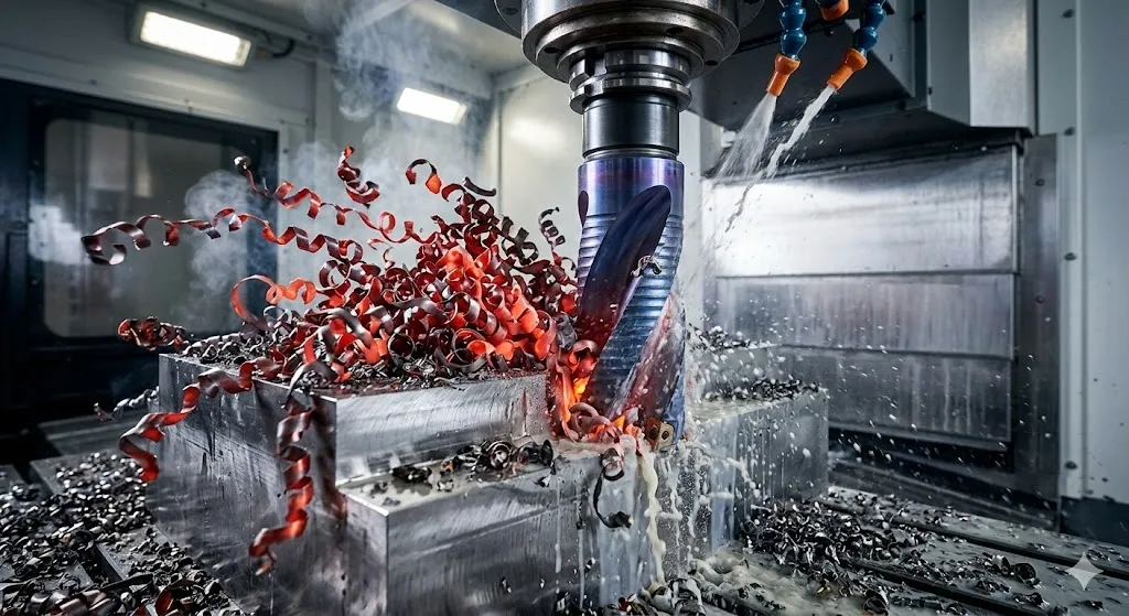 ในงานกัดบางประเภท โดยเฉพาะการกัดร่องลึกหรือการกัดเต็มหน้าดอก (Slotting) เศษวัสดุจะเกิดขึ้นจำนวนมาก หากร่องคายเศษมีพื้นที่ไม่เพียงพอ เศษอาจสะสมและอุดตันภายในร่องของดอกกัดได้ แต่ด้วยโครงสร้างของเอ็นมิล 2 ฟันที่มีช่องว่างระหว่างฟันมากกว่า จึงช่วยให้เศษถูกระบายออกได้รวดเร็ว ลดความเสี่ยงที่เศษจะอัดแน่นจนทำให้ดอกสึกเร็วหรือเกิดการหักของดอกกัด